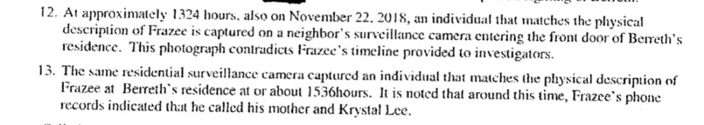 1 – 4 a.m.: Investigators found that there were at least seven contacts made between Frazee and Berreth’s cell phones between these hours, including a four-minute phone call that happened around 1:42 a.m.