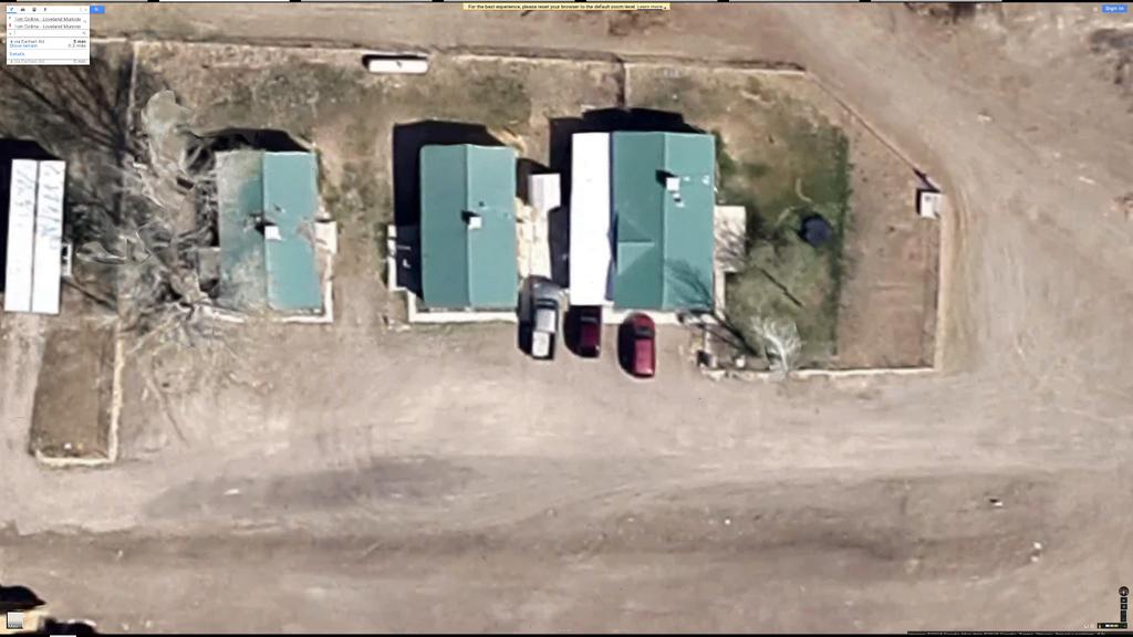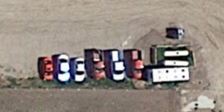 Very good! I had peered at that farm till I could hear the cows moo without noticing those pickups. As FindHG noted, some versions of Google map show different imagery, without the pickups. The map imagery in our case map, however, does show the pickups Foxfire mentions.