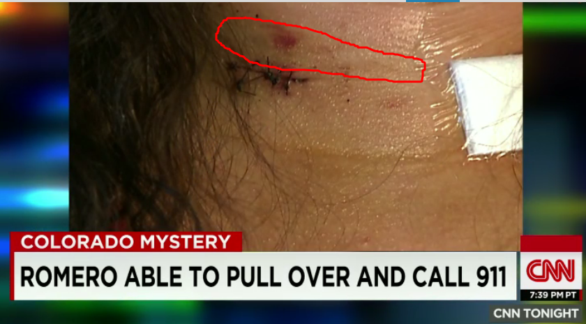 Cori Romero Shot 4/22; 11:15 PM; I-25 on-ramp; "I was merging onto I 25 when a car pulled up next to me... . ... my window shattered." Police later found "bullet holes" in the car.