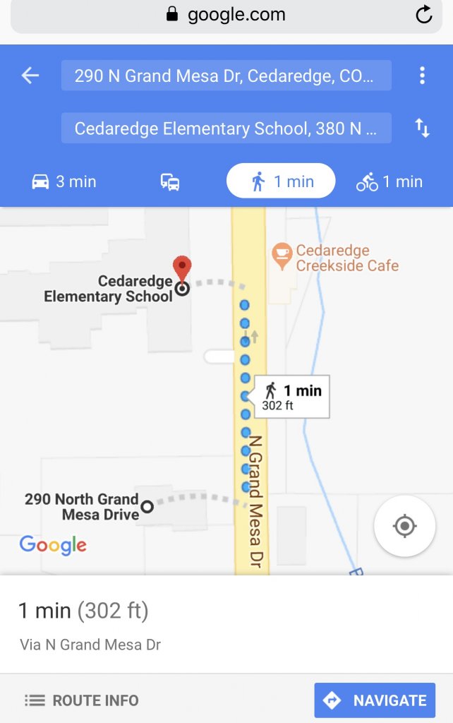 At the time of Roger’s disappearance, Cedaredge High School was located at 380 N. Grand Mesa Drive (the old high school building was turned into an elementary school in 2010), which is 300 ft from the former Pash residence, and later a Taylor Funeral Service: