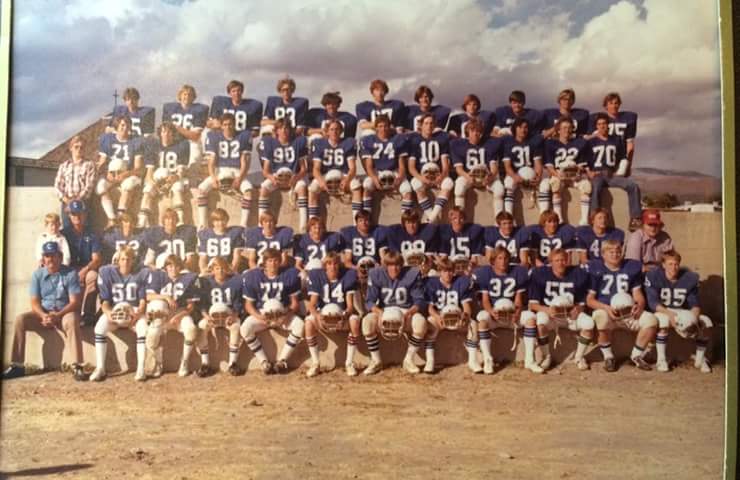Mike Kop (Class of 1980) posted this photograph in September 2016, featuring the Cedaredge High School Cubs of 1979. With all of the emphasis on Roger Ellison`s skiing activities and wether or not he was a member of the school wrestling team, it hasn't been confirmed if Roger actually played football and I can't say for sure if he appears in this photo.