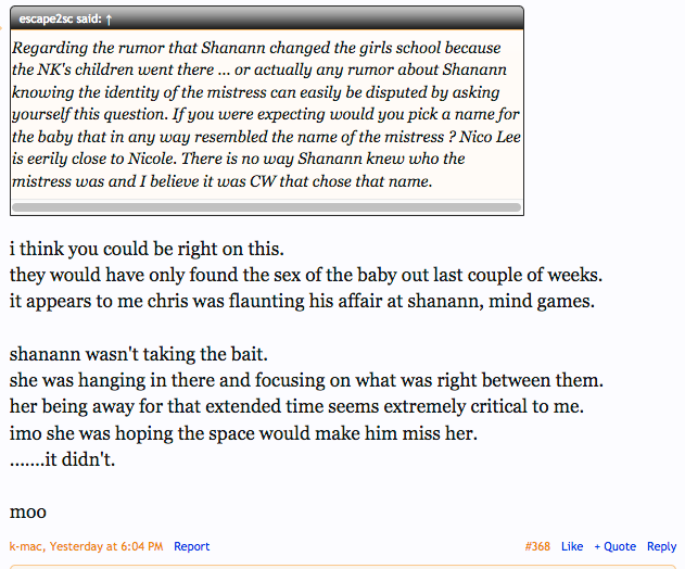 "Regarding the rumor that Shanann changed the girls school because the NK's children went there ... "