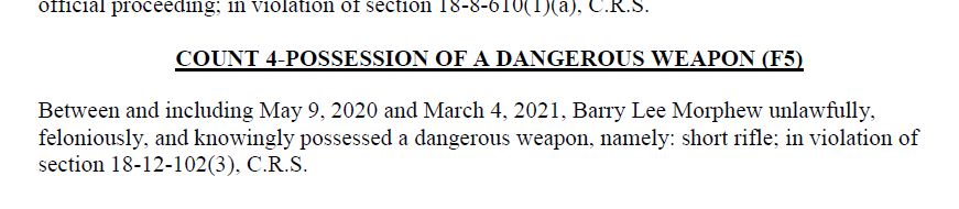 In addition to the gun charge, BM also has the voter fraud charge pending. IMO, a Colorado precedent was already set for this charge where a conviction by a jury resulted in probation and community service (see link from the prior thread below).