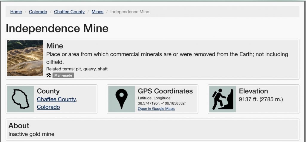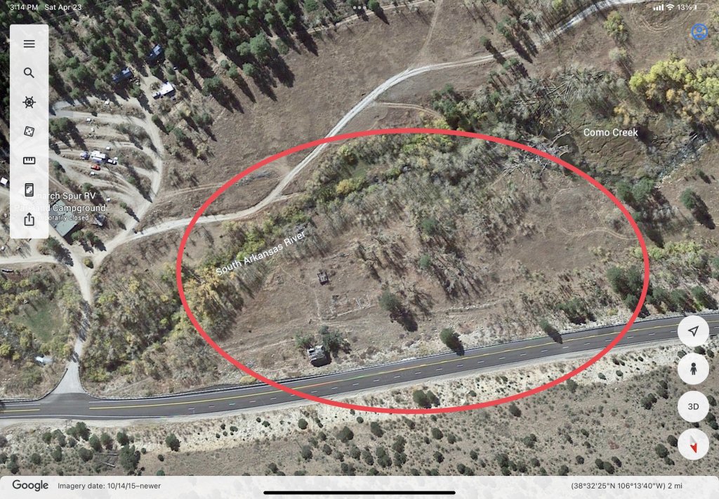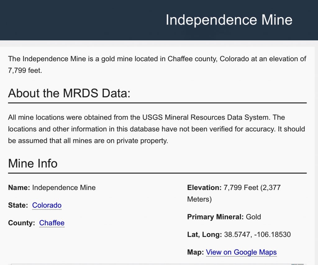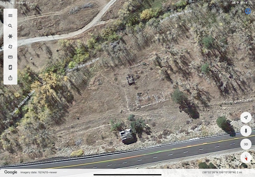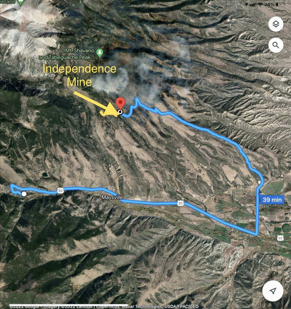 It was a gold mine not to be confused with another Independence Mine north of Poncha Springs, east of 285 . I cannot make out the mine from the satellite pictures.