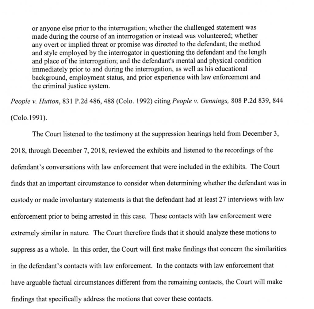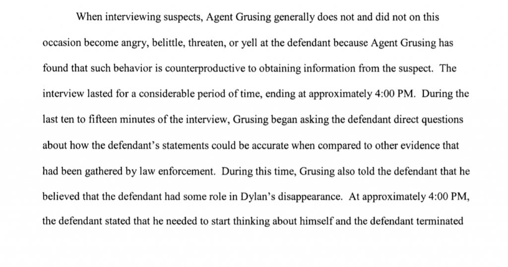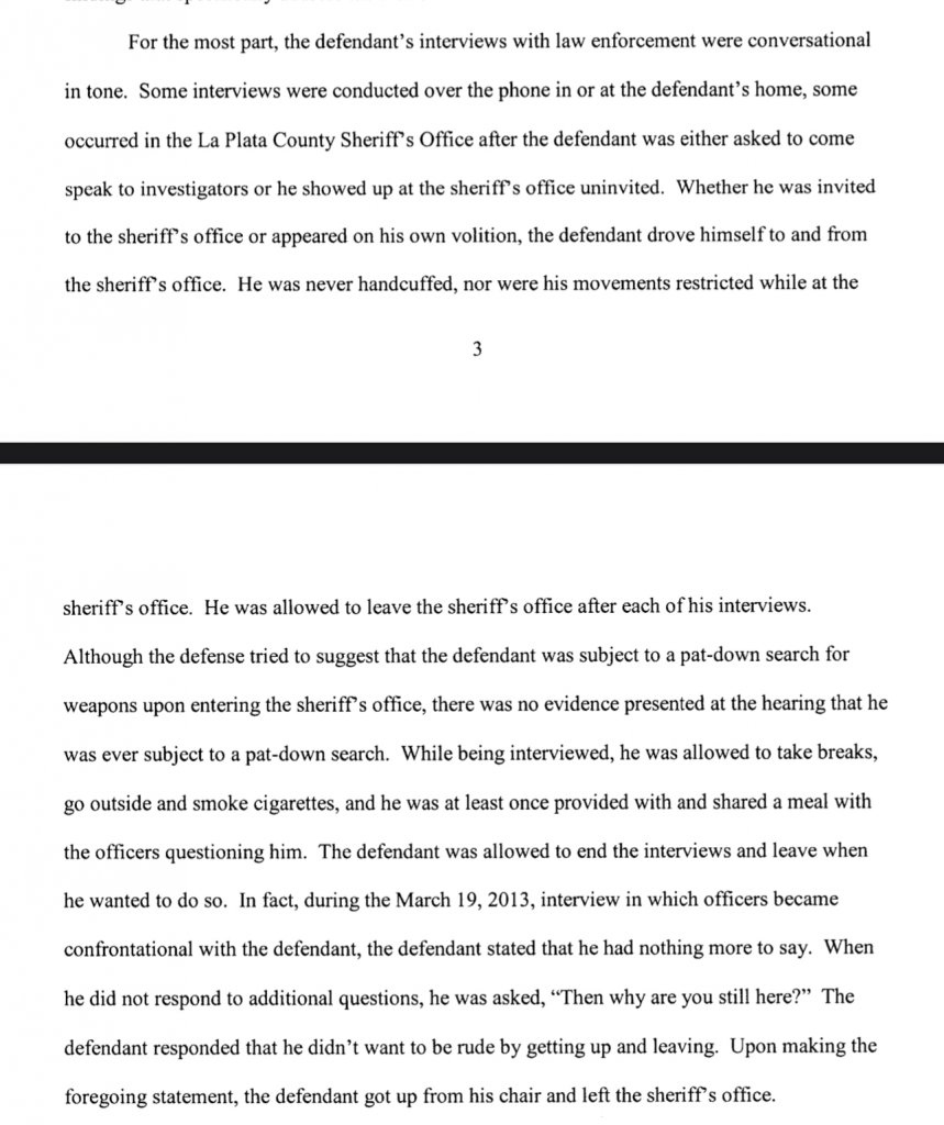 Thanks @O.Incandenza, I don’t recall either that there were any interviews mentioned where he was in a custodial context. But I could not say for sure that there were none. I def would have to believe he got the full Miranda blurb as required when they cuffed him outside of the anytime fitness in poncha springs and arrested him and put him in a what Iris likes to refer to as a “cage” aka jail cell for five months. Just my opinion