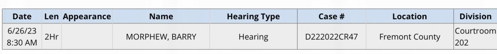 For the forgery charge plea agreement (voter fraud), BM's deferred judgment and supervised probation was to end on June 21, 2023. Given the forgery case was heard in Chaffee County, I'm not sure why BM has a hearing in Fremont. I also don't recognize the case number except the date is 2022. More likely this is about BM wanting his property released. JMO