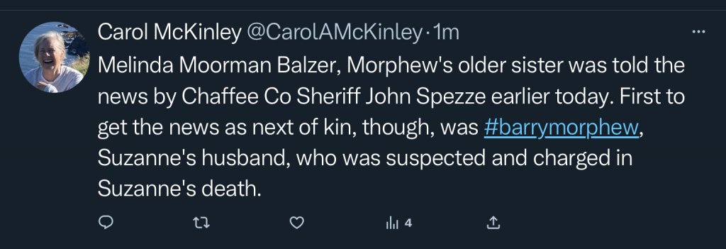 I called Barry Morphew's attorney minutes after the press release was sent out notifying the public that Suzanne's remains were found His lawyer had not been told the news. I told her on the phone Don't know if Barry was told the news about his wife before the press release
