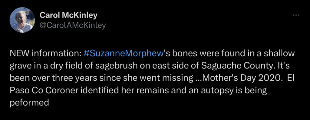 Saw the news and immediately jumped on here!! So happy (? Doesn't feel like the right word at all :() Suzanne has been found. ♥ I truly worried she never would be.