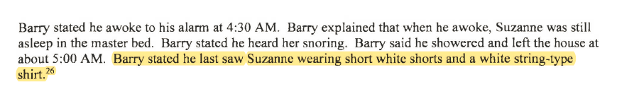 This makes sense if this is what he remembers her wearing last. Guilty knowledge imo Remember Suzanne's bathing suit was found hanging up and we saw the last picture of her sunning herself.