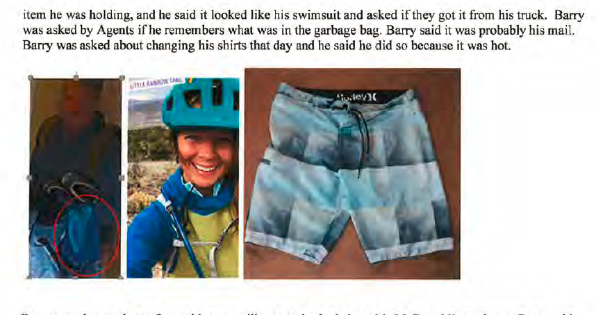 BM didn’t think he would be questioned by police. He could say anything and they would believe him. After all, a mountain lion dragged her 50 miles south and buried her. No, I think he said the lion dragged her up the mountain. LE knew he was lying.And right out of the gate, on the Saturday, he told the LEO that Suzanne was going to ride her bike that morning, "she always does".