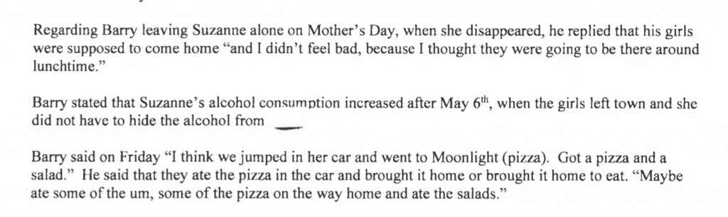 I so wish that Suzanne had been found much earlier. Then we would almost certainly know how she died, and if she was tranquillised As it is, we may never know, and I don't have much faith that BM will ever tell usI think that it is very likely that SM was in the bedroom and BM ran around till he found her locked in the bedroom. Forget the tranquilize.