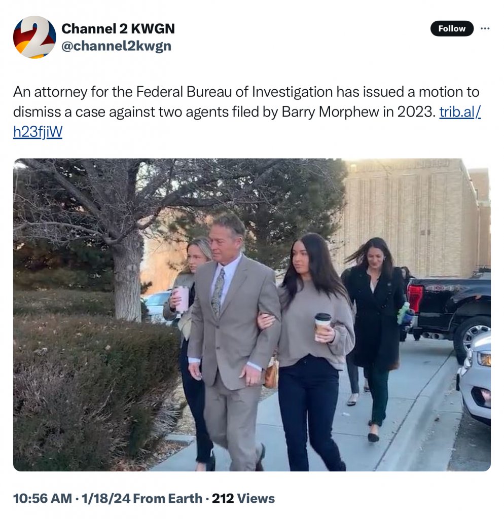 This ruling makes my day![According to a motion of dismissal document obtained by FOX31, Morphew sued FBI Special Agents Jonathan Grusing and Kenneth Harris. Morphew is seeking damages from the agents’ personal assets through the U.S. Supreme Court case Bivens v. Six Unknown![]()