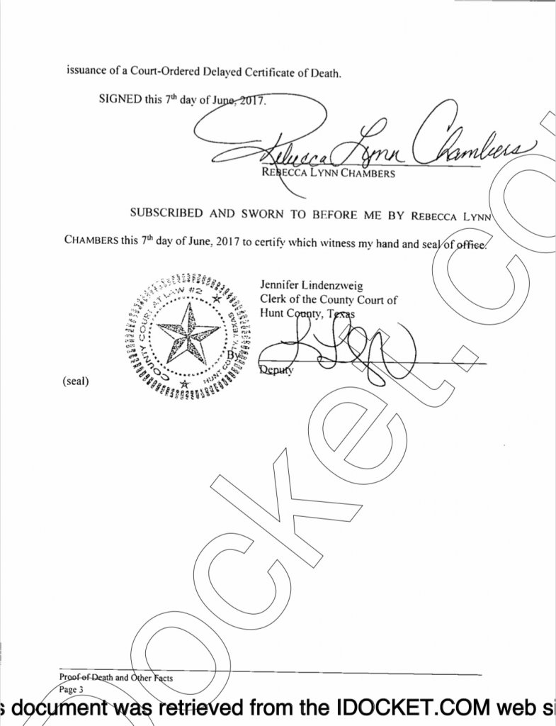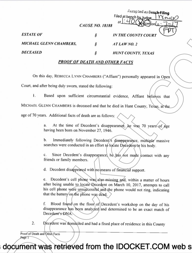and lets not forget that Michael Chambers was declared dead and his wife got a death certificate without a body - didn't take her very long eitherThis is just a reminder to members that not every state follows the same rules.