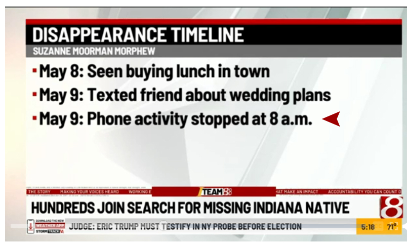 Did you see the timeline shift in the video portion? It said 8 am Saturday morning was the abrupt end of texting with Suzanne’s friend regarding the wedding. That piece just keeps on moving.