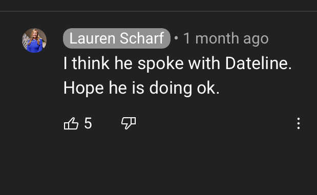 In LS most recent YouTube October 29 she says in the comments that she thinks that BM’s employee CC who refused to talk with her may have talked with Dateline.