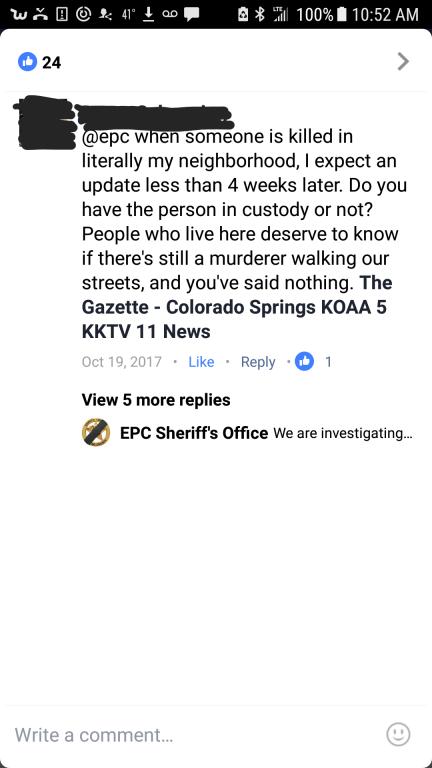 Hi Ember. I did look before and this is the Colorado Springs crimestoppers facebook. I did look a while ago but it may be good to check it again. Somebody who is on Facebook may be able to inquire of them about a TW reward.