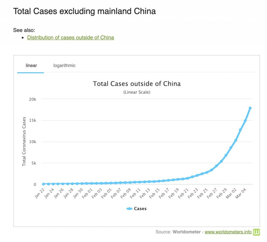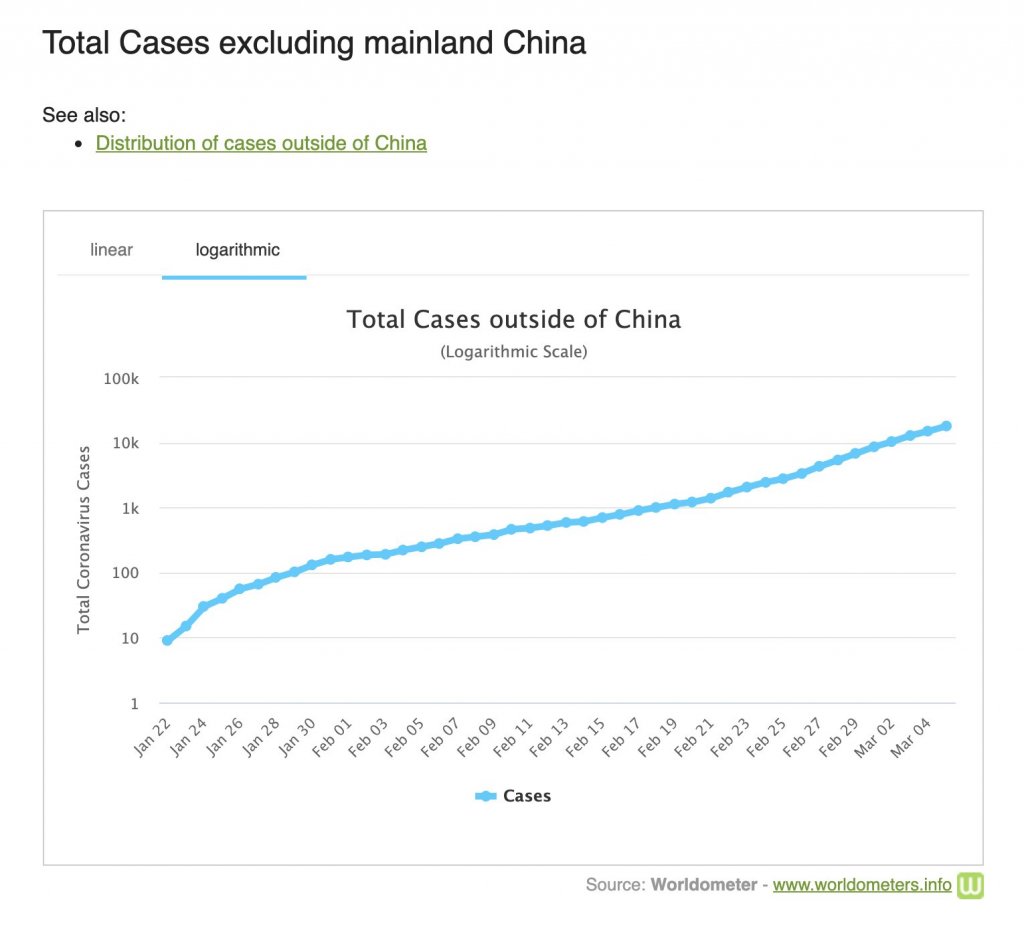 COVID-19 cases outside mainland china follow an exponential so closely it could be a literal textbook example for exponential growth. Grant Sanderson on Twitter