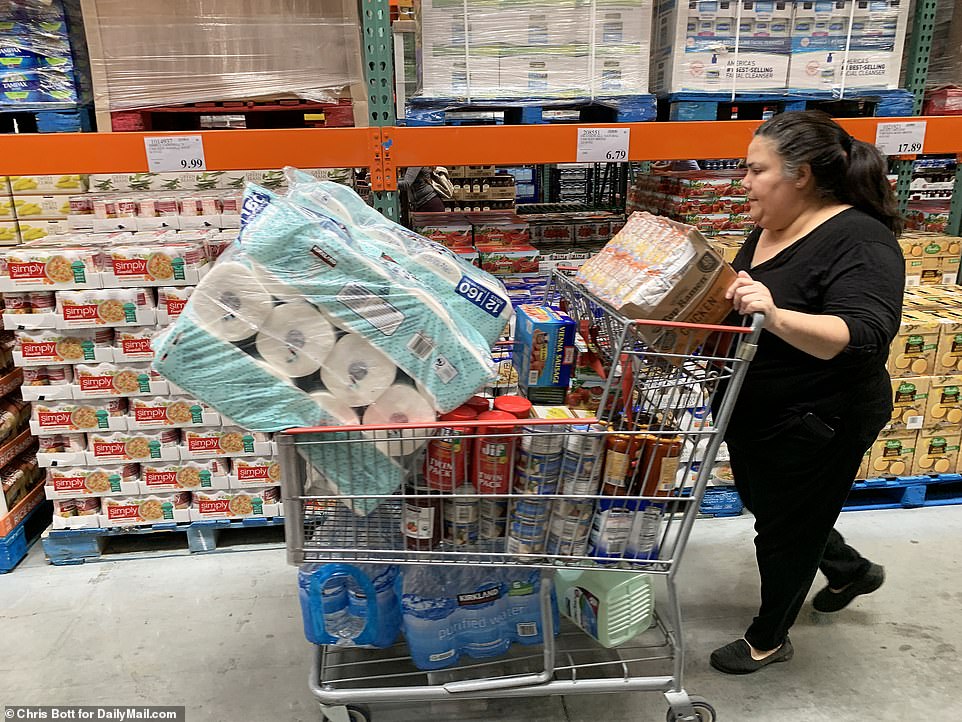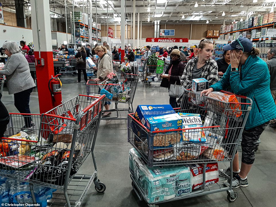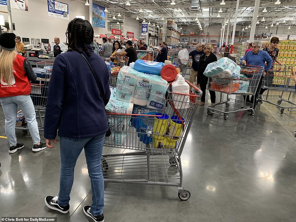 Anxious shoppers across the US line up at stores to stockpile water, toilet paper | Daily Mail Online