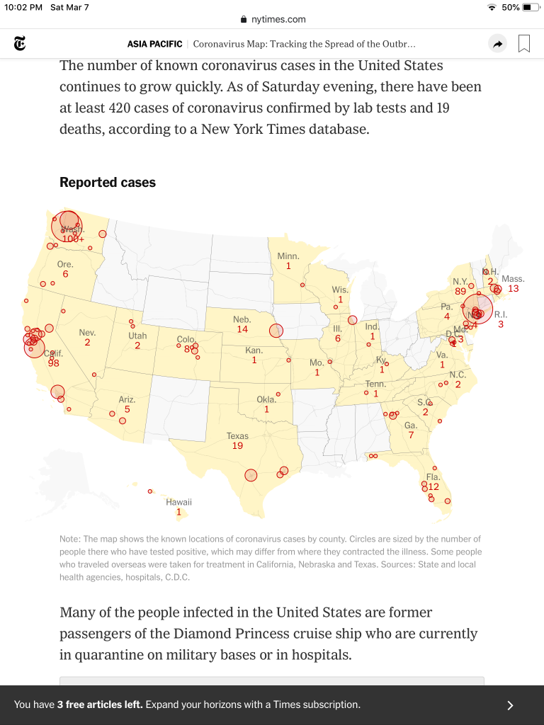 I suspect DC will start to increase numbers rapidly, given foreign travel in & out, and the known cases at CPAC and the other conference with thousands of attendees, including politicians.