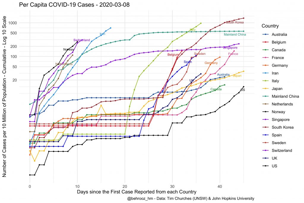 This basically does it....the rates for SK and Italy of cases per million population are significantly over China's top level and took a much steeper turn than China.
