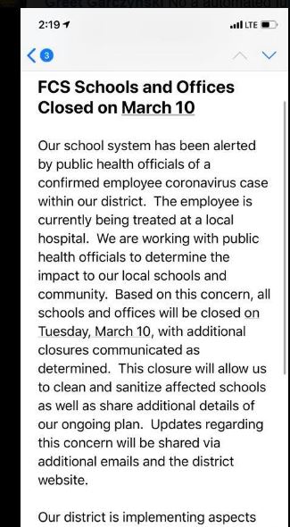 Text alert in Georgia. Fulton County School system (metro Atlanta area) is closing the ENTIRE county schools tomorrow due to positive Coronavirus in schools.