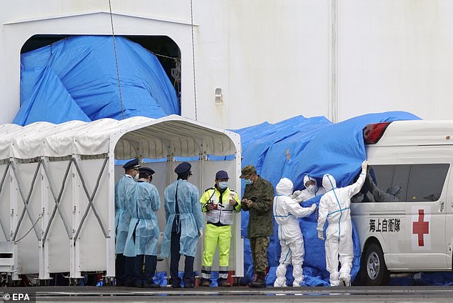 Elderly Australian man contracts coronavirus on board the Diamond Princess cruise ship before he's removed from the ship off Japan