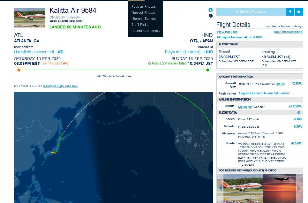 Kalitta Air 9584 (e.d. 8 hr 43 min flight flew in From Hartsfield - Jackson International airport, Atlanta GA non-stop)