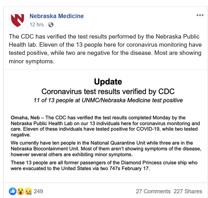 Just a reminder, not that anyone here was “wrong” but that we were all MISLED in believing that our government had completely contained those with the virus. That they kept the other US citizens safe as they brought them home.