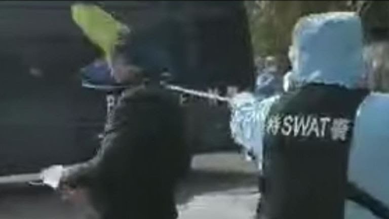 Coronavirus: Chinese police throw net over 'victim' in staged exercise