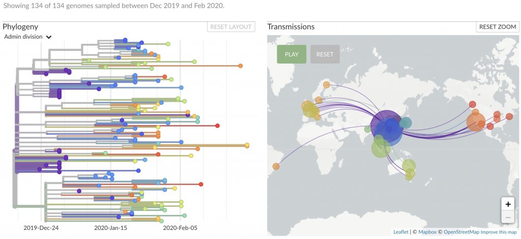 We've updated auspice with 5 new #SARSCoV2 genomes from the #COVID19 pandemic from Japan, China and Canada bringing the worldwide total up to 134(!). 1/4 Nextstrain on Twitter