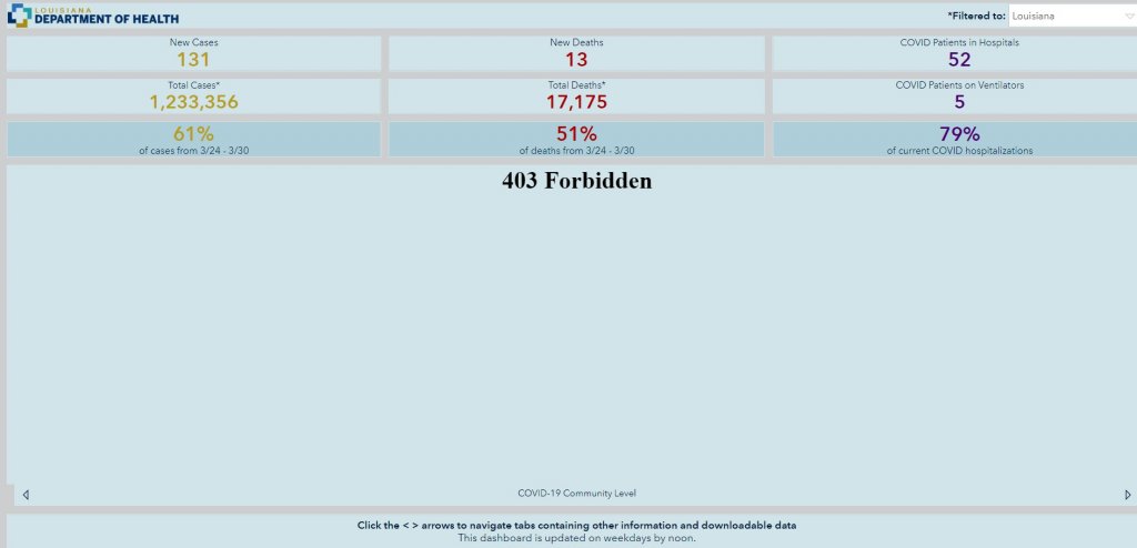 I don’t know why it’s forbidden for you. I can see it. The data is from the Louisiana Department of Health website and definitely a legitimate website.