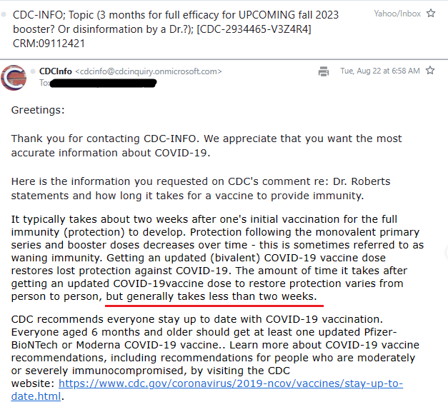 I got an answer from the CDC in regards to my Q of whether or not it now takes 3 months, or if Dr. Roberts was spreading disinformation. Looks like we can put that to rest and move on with what we all know is the correct info (2 wks!) I KNEW that had to be wrong because he couldn't have info about a vaccine that hasn't even been created, tested, nor has 3 months passed! It makes me wonder if AI was used to write that article because I've seen 3 months used a lot for Covid info after searching for an answer to this Q, but the 3 months wasn't about how long it took for full immunity. Many of you have said that this is where you turn to for the most accurate info (well, after the CDC on this topic. lol)