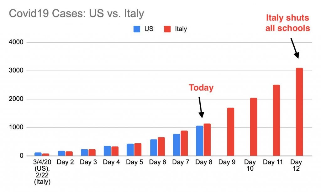 THREAD: In U.S. we face two alternative but hard outlooks with #COVID19: that we follow a path similar to South Korea or one closer to Italy. We probably lost chance to have an outcome like South Korea. We must do everything to avert the tragic suffering being borne by Italy 1/10