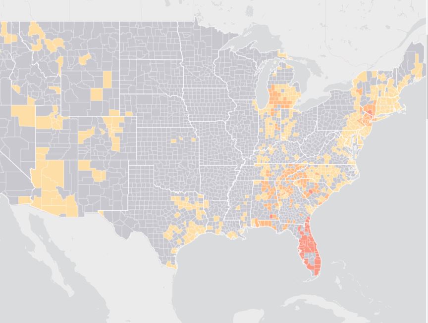 Good link as to a hot map. I believe what this map actually is ... it's the flu surveillance system of health departments where they are sent in samples from docs thinking it's the flu, but it's not. And therefore "atypical".