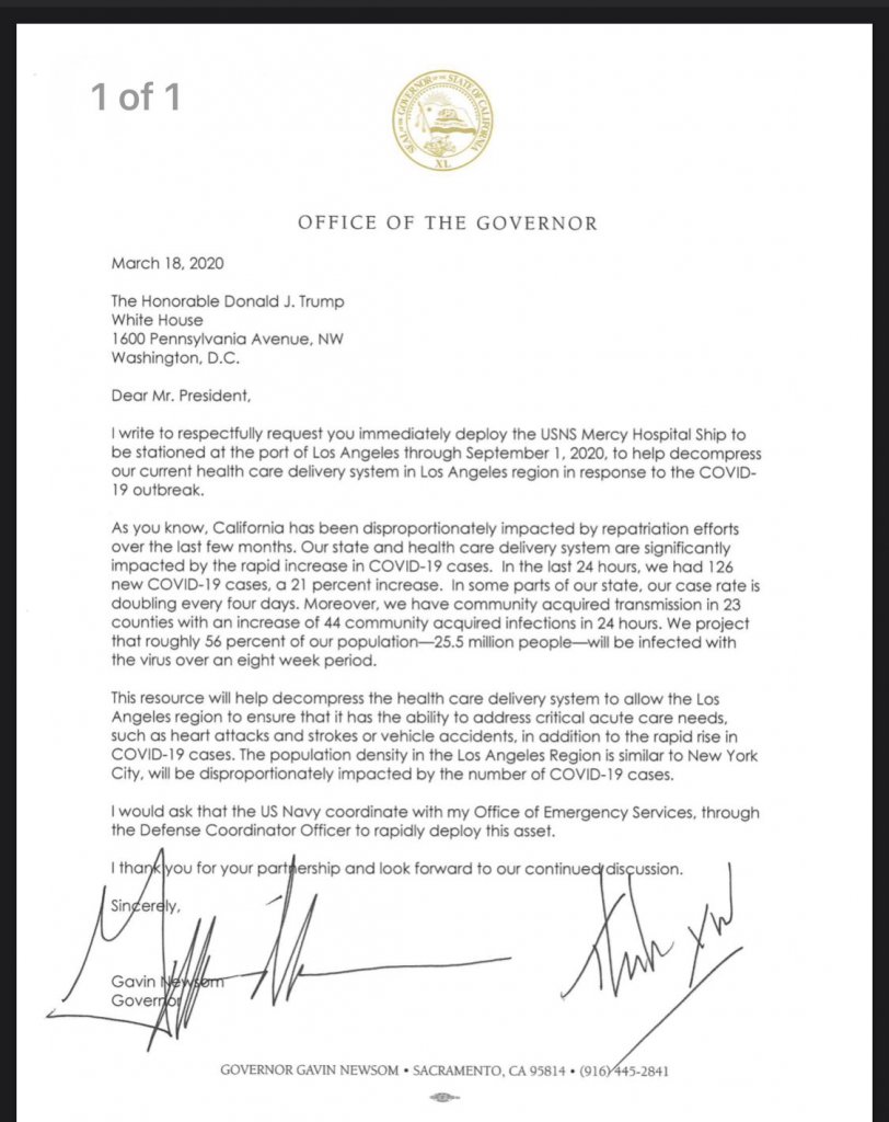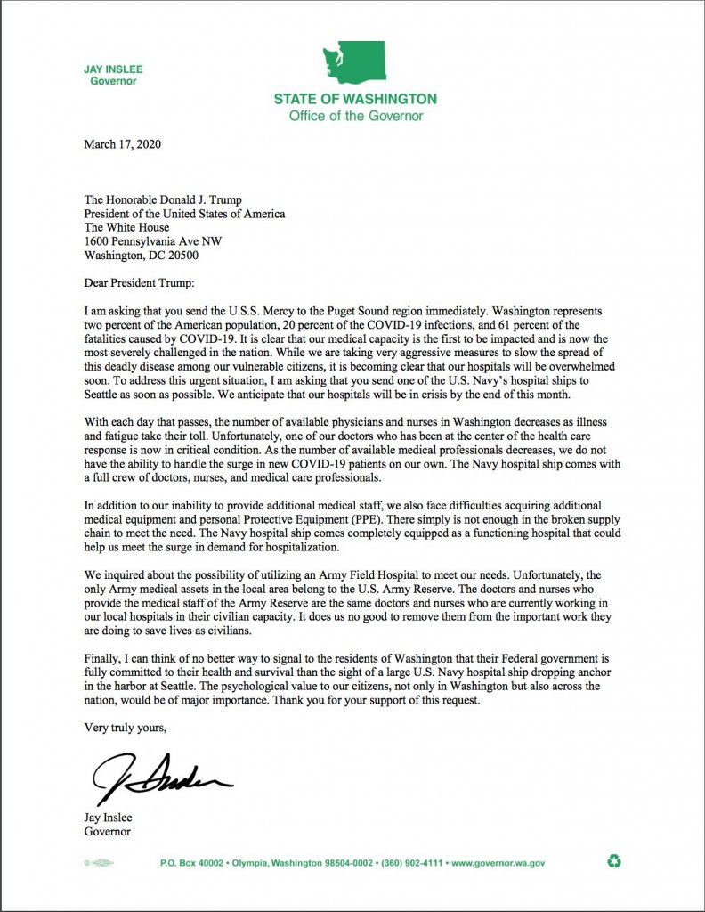 Washington State and California both desperately want the U.S.N.S. Mercy docked on their shores to provide additional hospital capacity.