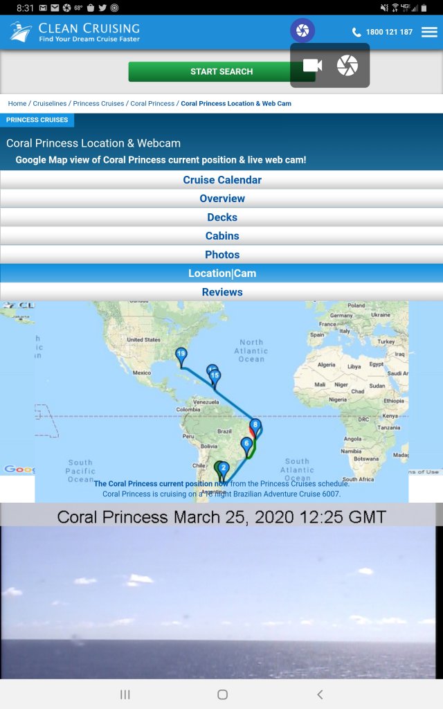 Coral Princess Ship Tracker | Satellite location view | Live webcam