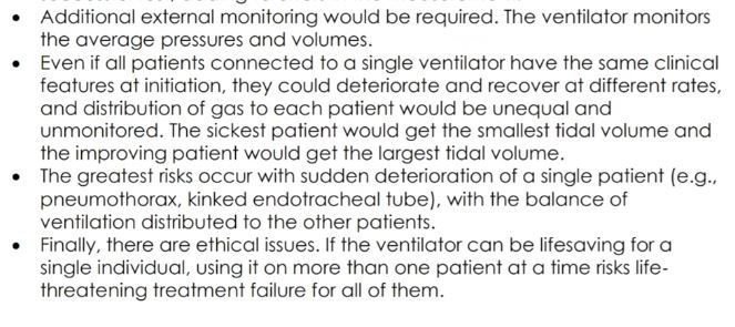 I agree - this thought of multiple patients on same ventilator has troubled me from the first suggestion. In my opinion it compromises all the patients using the same ventilator. MOO