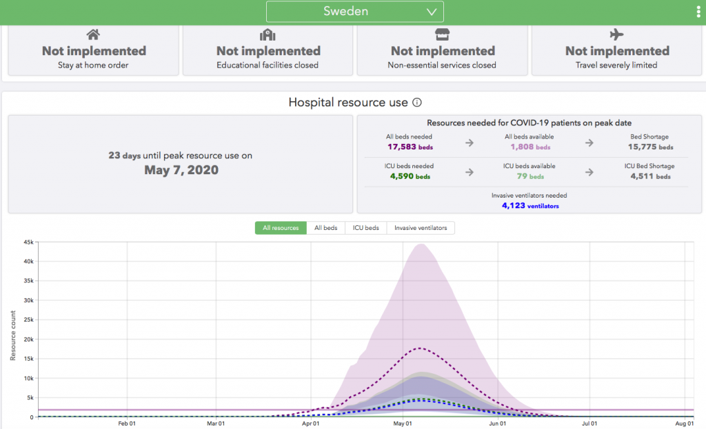 IHME predicts 18,000 deaths in Sweden from COVID-19. This is one out of every 555 people.