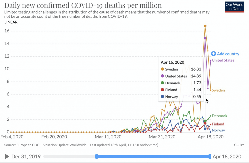 One reason for the higher number of cases in Sweden compared to the other Nordic countries is that Sweden has about twice as many inhabitants than the other countries.