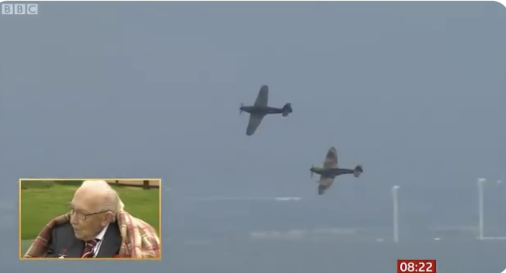 Captain Tom Moore, the war veteran who has raised more than £29m for the UK's NHS, celebrates his 100th birthday with an RAF flypast.