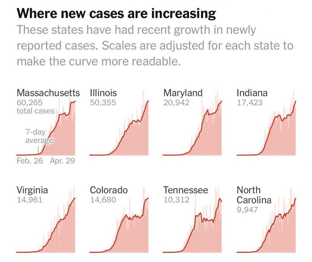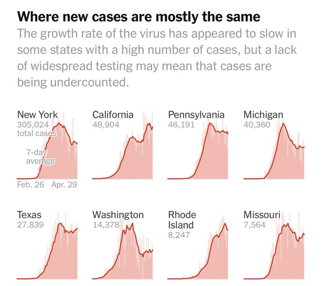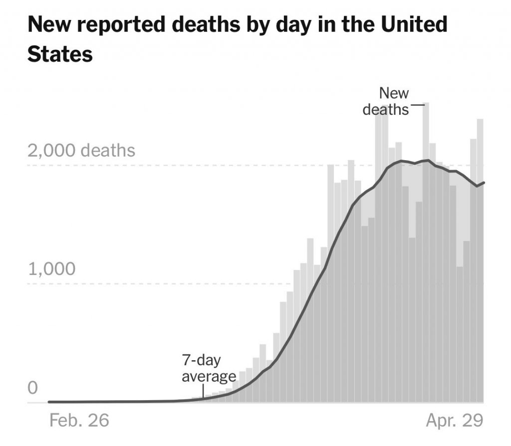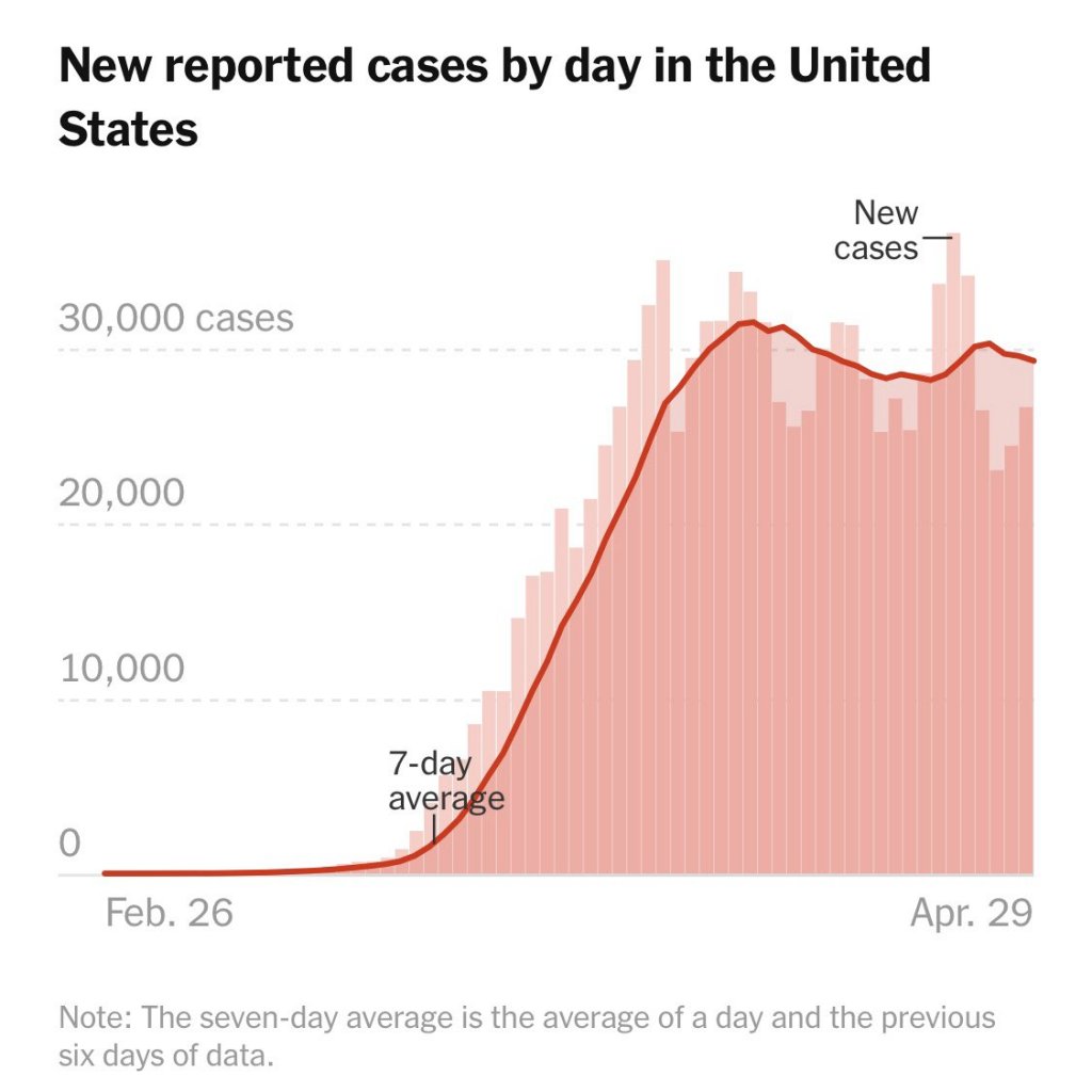 Daily reported new covid19 cases and deaths have moved around but remained on a mostly flat trend line for weeks. (Photos courtesy of @NYTHealth) Scott Gottlieb, MD on Twitter