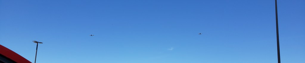 Worlds worst flyover photo. I took a break, got in my car, my sprite exploded and boom. Cargo plane flyover. You have to look for the plane's lol.