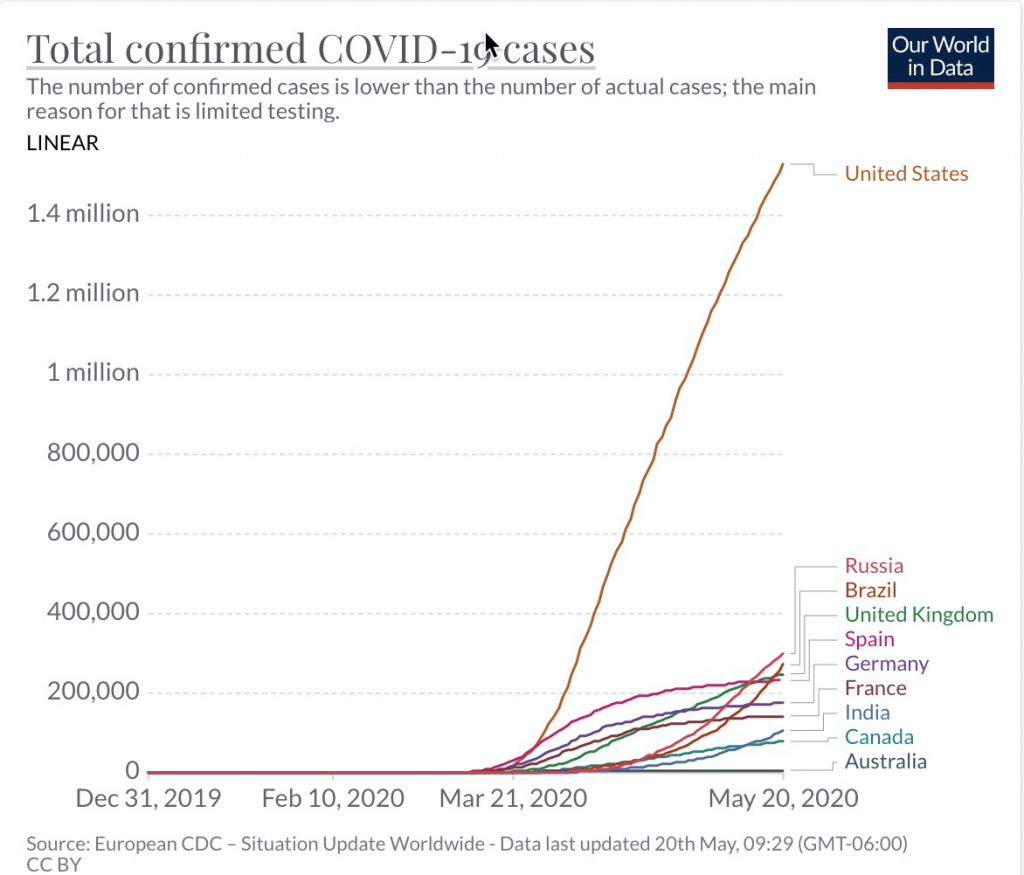 USA, Russia, Brazil and India seem to have out of control numbers at this time