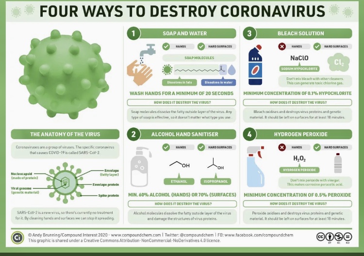 There are lots of products available. I am currently using "Sani Cloths", used for disinfection of viruses, industrial strength. This stuff isn't sold at the store. It is specific for clinics, hospitals.
