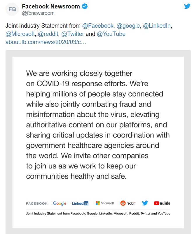 Facebook, Reddit, Google, LinkedIn, Microsoft, Twitter and YouTube issue joint statement on misinformation – TechCrunch