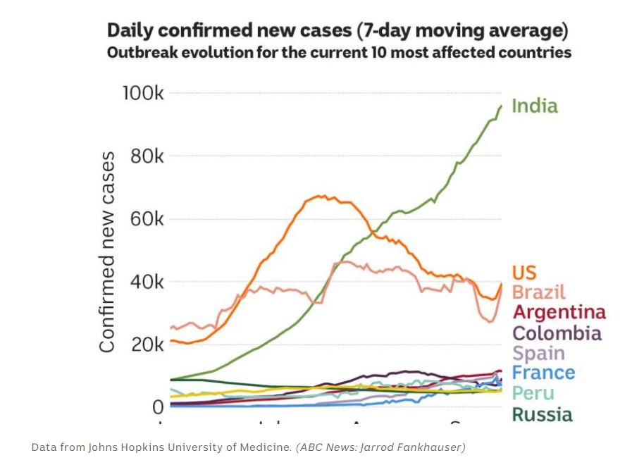 After a slow start earlier in the year, India is reporting more new cases per day than we've seen before in one country.