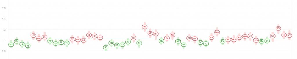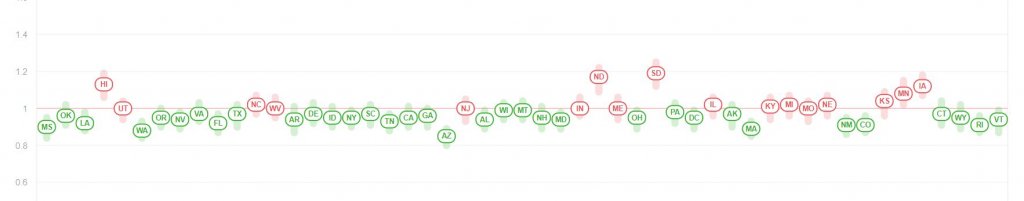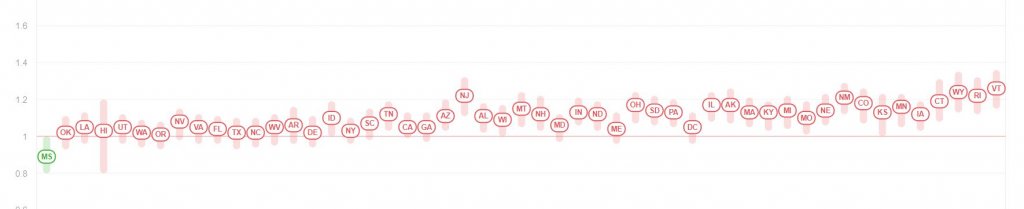 Then one month ago, bad Rt rates all around ... except for one state. What is happening in that state? (MS) Are stats being reported?