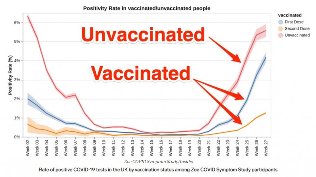 This study (from the UK) shows infections ... and separates two dose, one dose, and no dose cases.