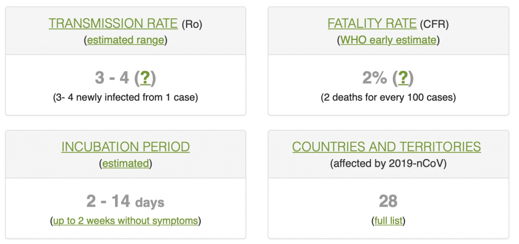A new addition to the one you have is the "suspected" cases category, which I've seen folks wanting to see. Thanks! I've never seen that one before, and wonder where they are lifting that info from as I don't see on WHO or John Hopkins site, not that I doubt it.