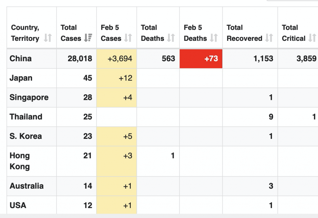 • How many cases are there? There have been 28,275 cases and 565 deaths around the world. All but two of the deaths have been in mainland China (The Philippines and Hong Kong have each seen one death).